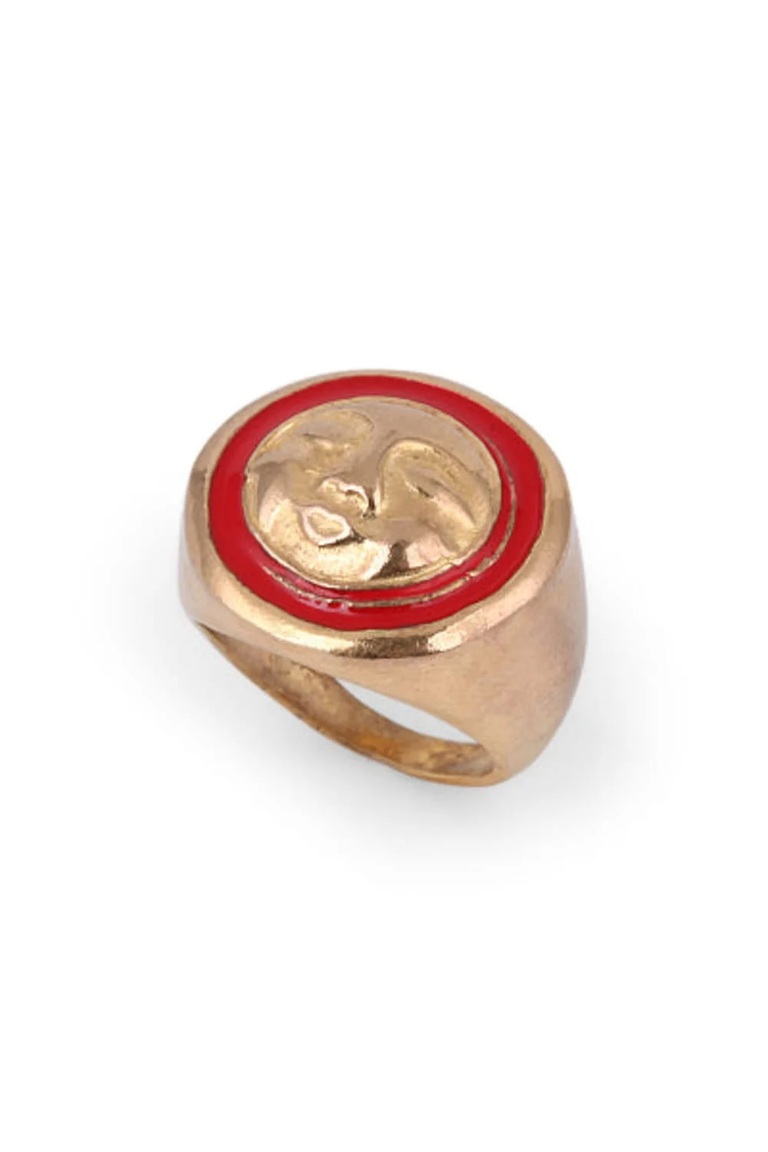 Kırmızı Mineli Face Yüzük