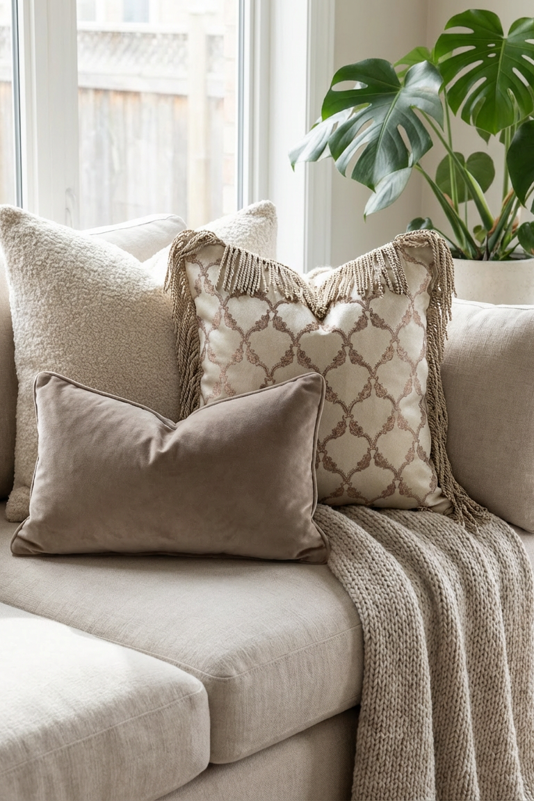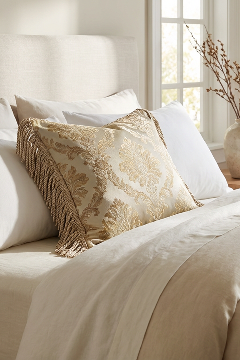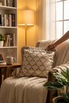Bu etkileyici yastık, özel kupon kumaş ve dikiş detayları ile tasarlanmıştır. Oturma odası ya da çalışma alanınız için zarif bir dekoratif dokunuş sağlar.