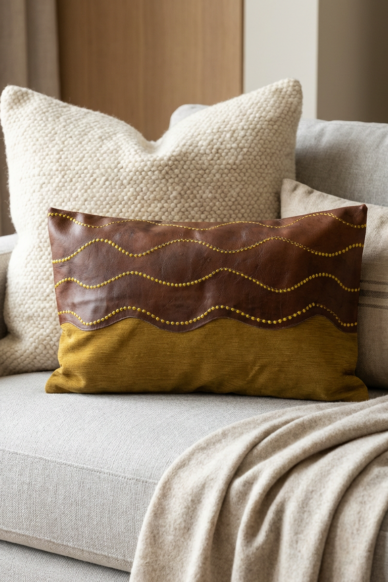 Bu etkileyici yastık, özel kupon kumaş ve dikiş detayları ile tasarlanmıştır. Oturma odası ya da çalışma alanınız için zarif bir dekoratif dokunuş sağlar.
