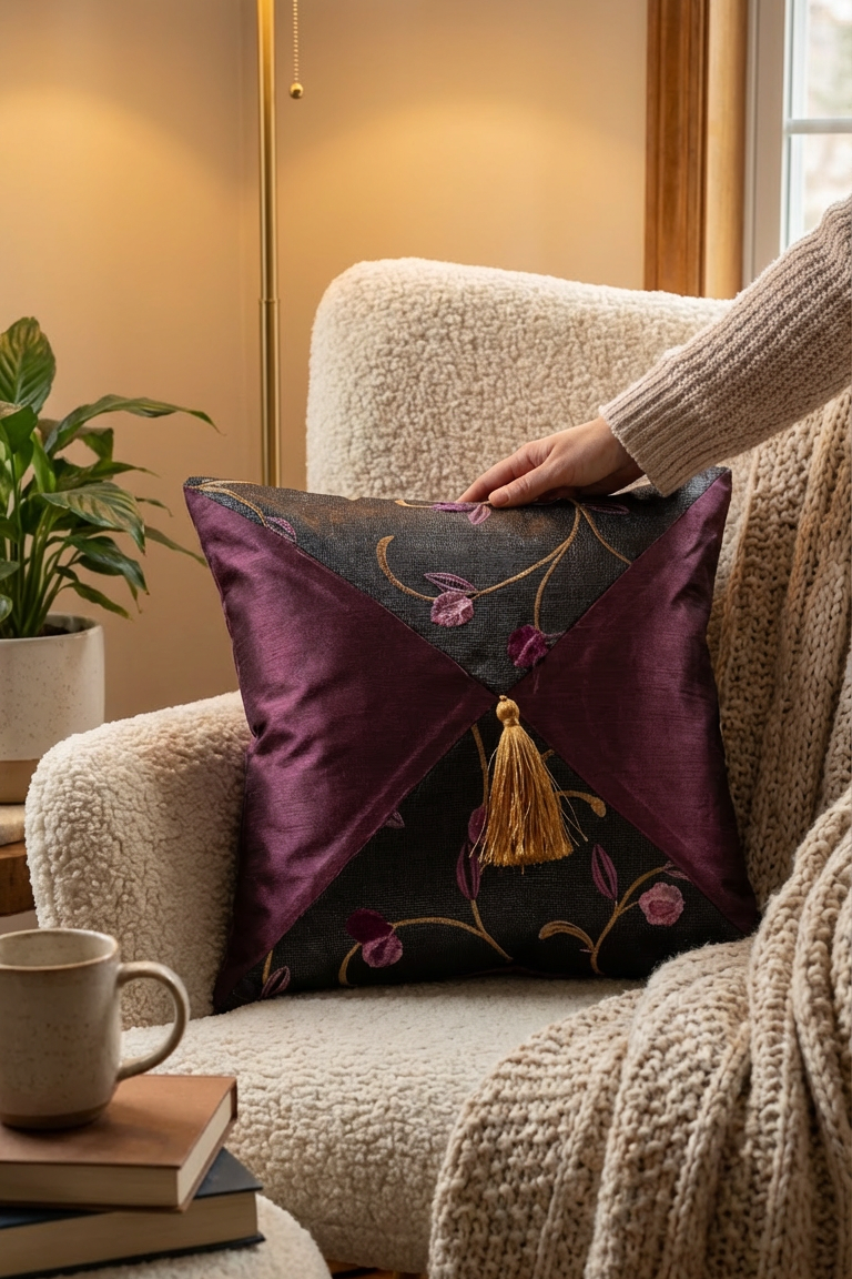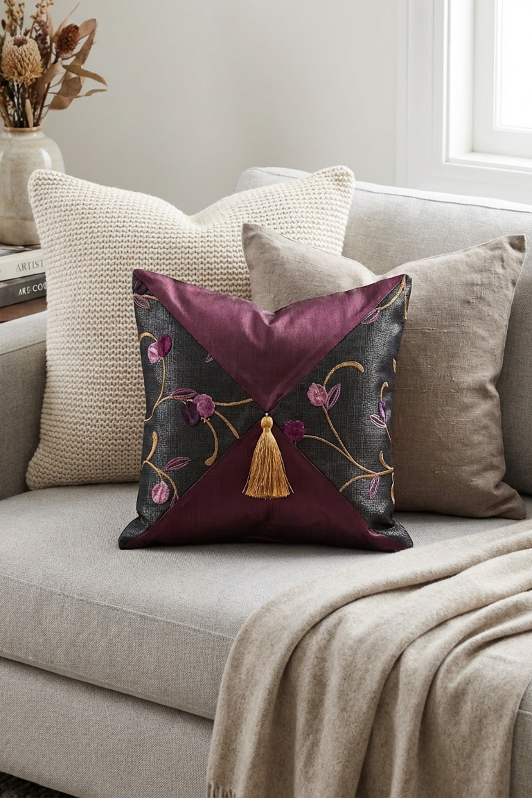Bu etkileyici yastık, özel kupon kumaş ve dikiş detayları ile tasarlanmıştır. Oturma odası ya da çalışma alanınız için zarif bir dekoratif dokunuş sağlar.