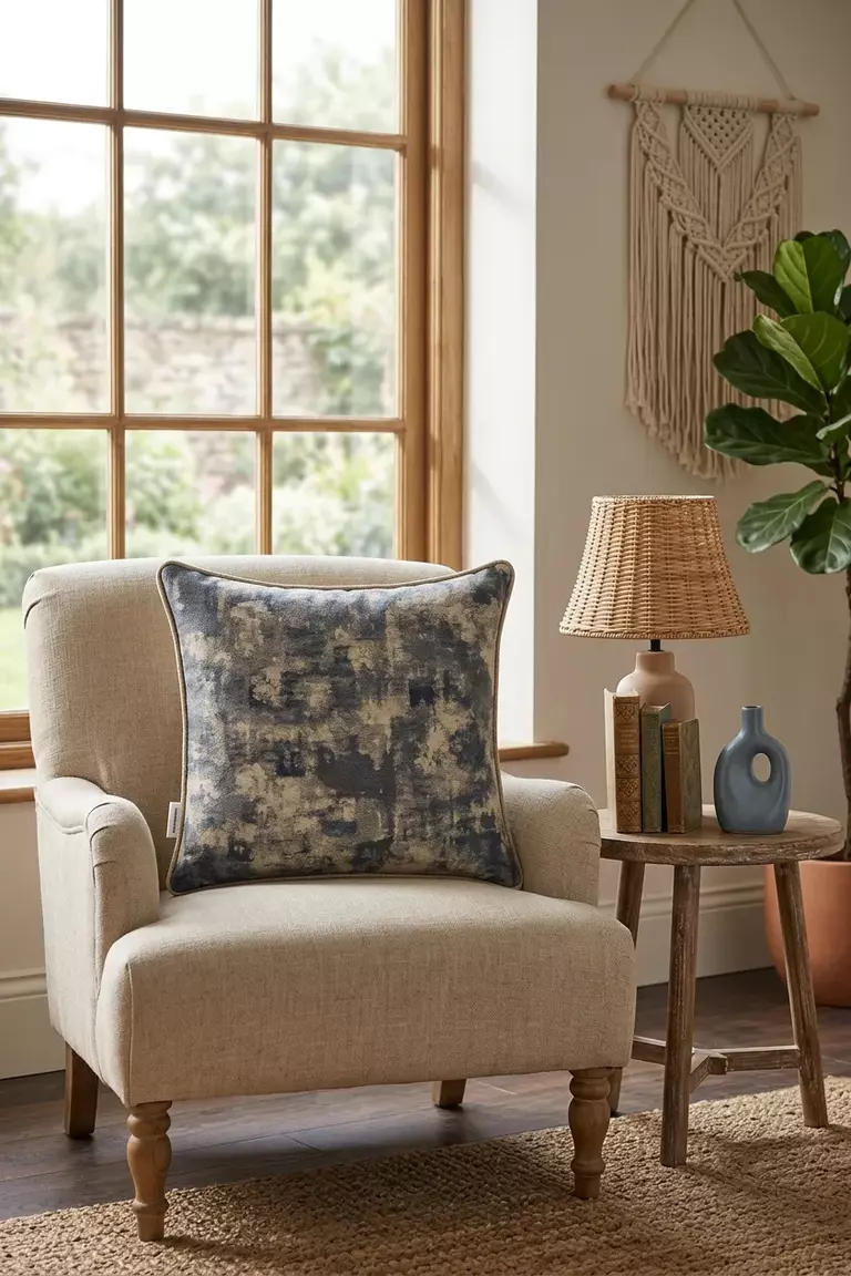 Bu etkileyici yastık, özel kupon kumaş ve dikiş detayları ile tasarlanmıştır. Oturma odası, çalışma alanınız yada yatak odanız için zarif bir Bu etkileyici yastık, özel kupon kumaş ve dikiş detayları ile tasarlanmıştır. Oturma odası, çalışma alanınız yada yatak odanız için zarif bir dekoratif dokunuş sağlar.