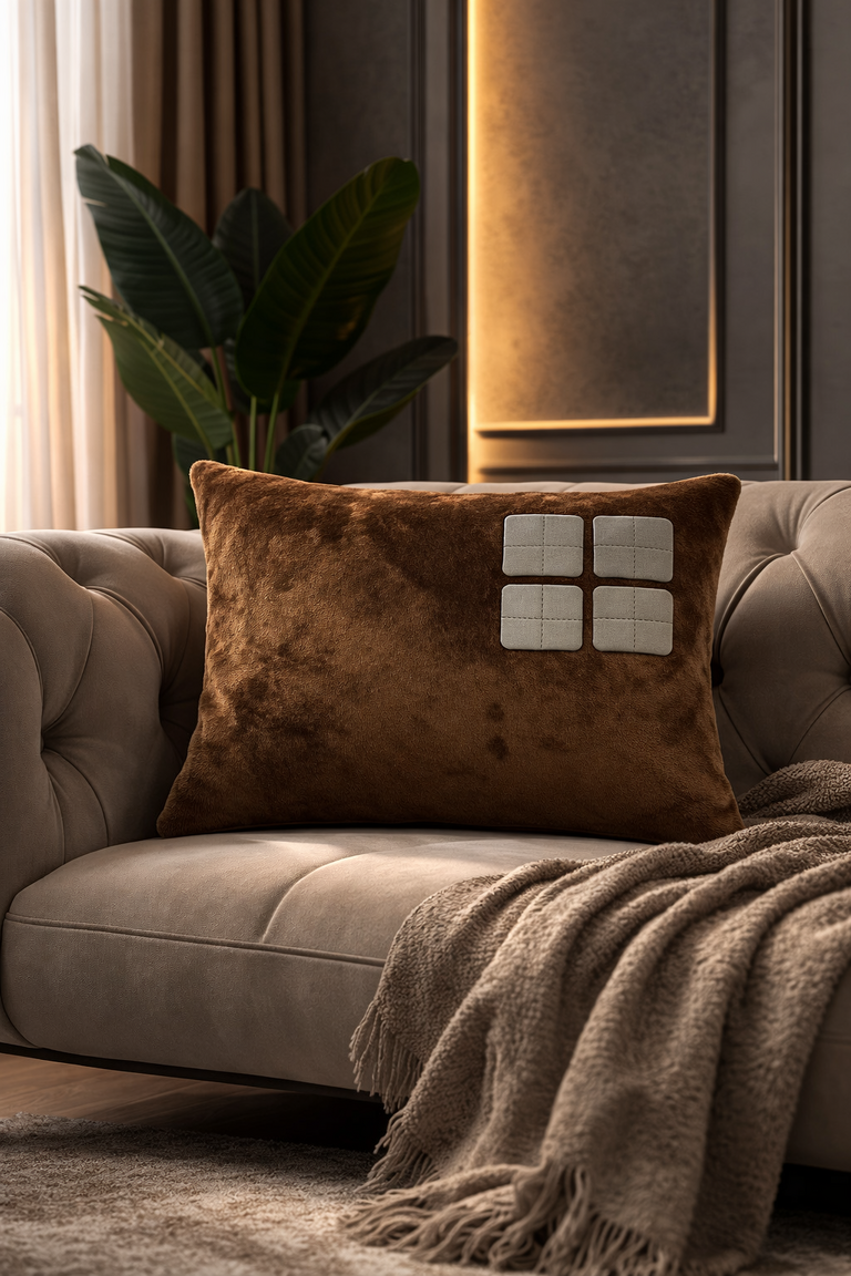 Bu etkileyici yastık, özel kupon kumaş ve dikiş detayları ile tasarlanmıştır. Oturma odası ya da çalışma alanınız için zarif bir dekoratif dokunuş sağlar.